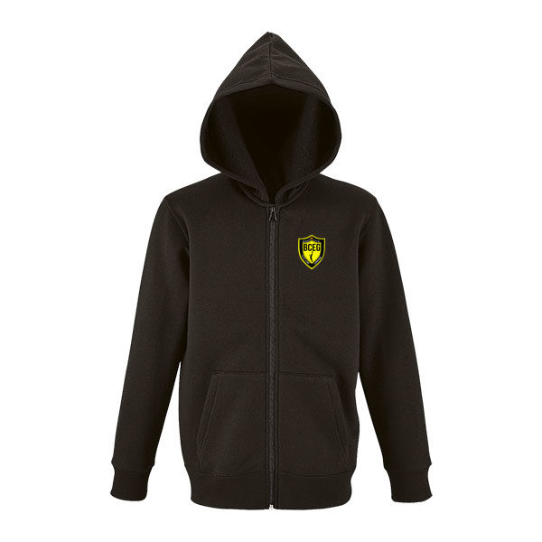 Manches montées. 2 poches kangourou. Capuche. Poignets et bas en bord côte.